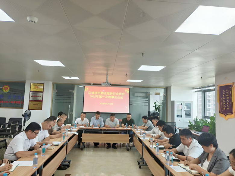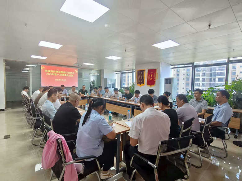 2025年9月3日16点30分,防城港市物业服务行业协会(简称“物协”)2025年第一次理事会会议在三生国贸中心1号楼B单元809会议室召开。市住房城乡建设局干部高威、物协理事单位25名代表、物协会长薛振、监事翁守辉、秘书长杨丰萌出席会议,会议由物协会长薛振主持。会议有七项议程:一、关于各物业企业加强基孔肯雅热疫情防控事宜;二、讨论关于开展2025年度“加强物业管理 共建美好家园”活动;三、讨论关于参加2025年广西物业管理行业年会相关事宜;四、协会2025年度上半年财务收支报告;五、协会2025年度目前会费收取情况报告;六、会议上审议协会新增副会长单位以及理事单位;七、市住房城乡建设局干部高威发表讲话,对行业提出工作要求。